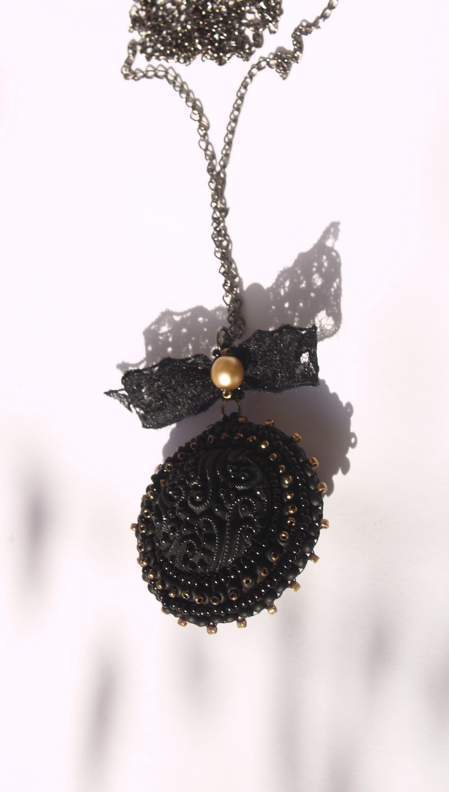 A Little Black Dress inspirálta ezt, kis arannyal megbolondítva. A két oldalát egy picit különbozőre készítettem. Alapból azért csináltam két oldalt neki, hogy ha fordul a láncon, ne legyen csúnya. Aztán gondoltam, ha már duplán csinálom, ne legyen ugyanolyan...